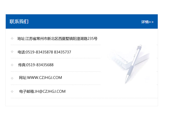 地址:常州市新北區(qū)友邦商務(wù)大廈1幢16、17層  電話:0519-85101652  傳真:0519-85112595  郵編:213022  網(wǎng)址:www_cz-jiayue_cn.sf51999.com  郵箱:xiajifengaa@163.com